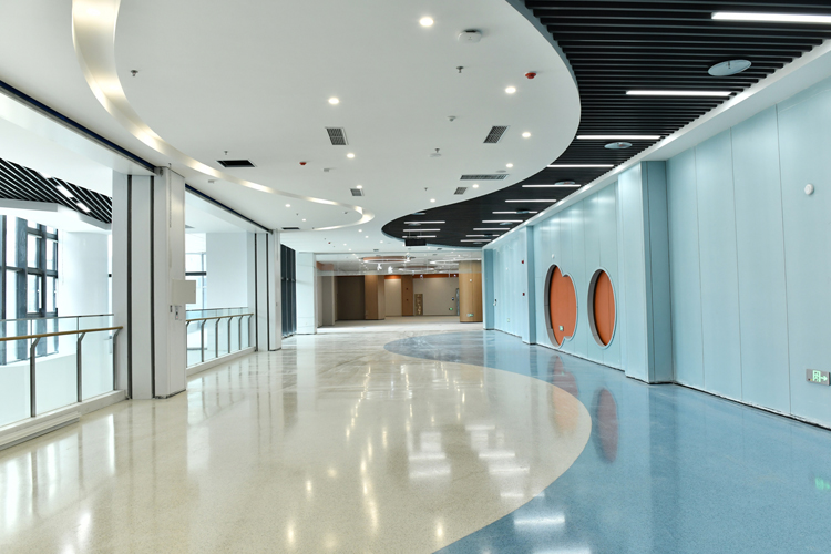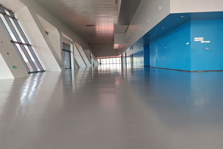 渤??萍即髮W9號樓大廳、走廊,以及體育場館看臺、走廊、內(nèi)廊等均由秀珀SET 琥珀石藝術(shù)地坪系統(tǒng)打造。